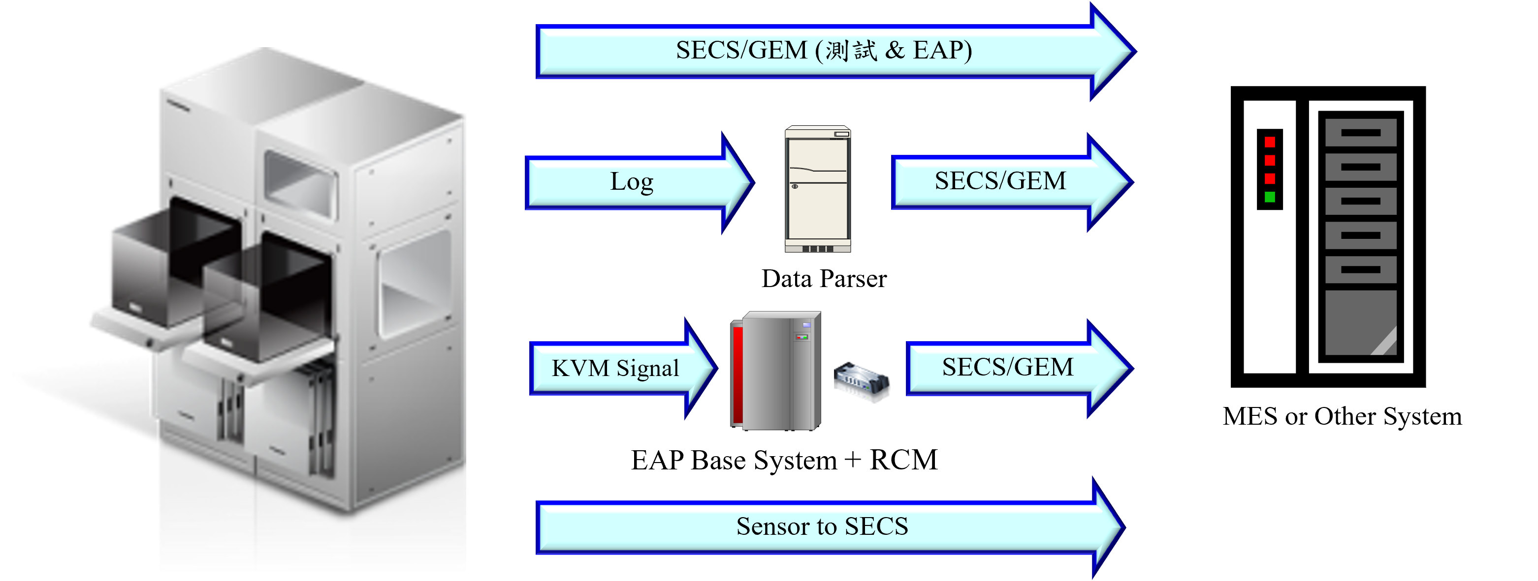 圖1.舊機台的資料採集與互聯網示意圖(以 SECS/GEM為例)