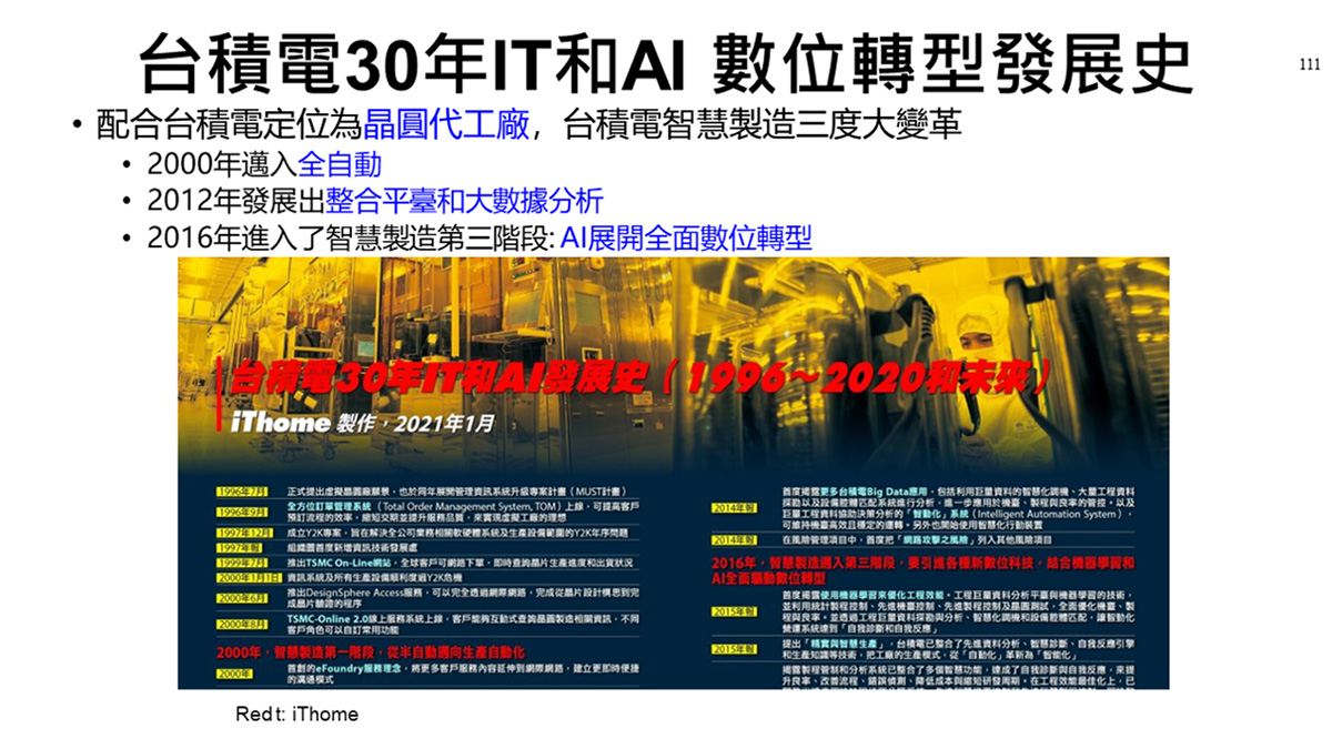 圖1. 台積電30年IT和AI 數位轉型發展史 (iThome)