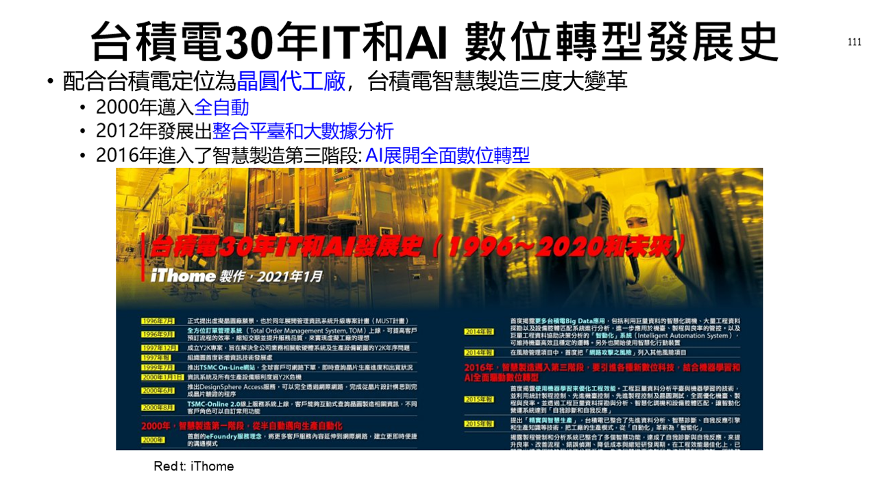 圖1.台積電30年IT和AI 數位轉型發展史 (iThome)