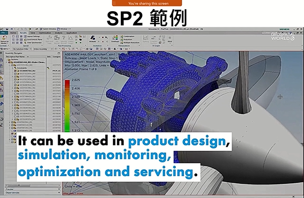 影片連結中(0:22)所呈現的例子將協作產品工程的優勢展現得淋漓盡致(如圖2)。從馬達的模擬、設計,到運作時的溫度監控以及後續的維修等,這些都可以在數位雙生的模型中得到全面呈現。這種協作使得不同部門之間能夠更緊密地合作,從而在產品開發過程中及早發現問題並進行解決,提高了產品的設計質量和生產效率。